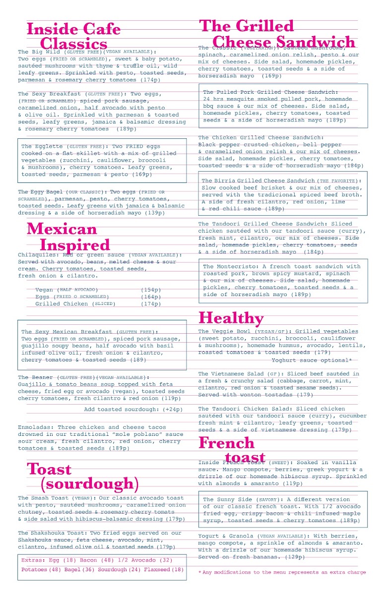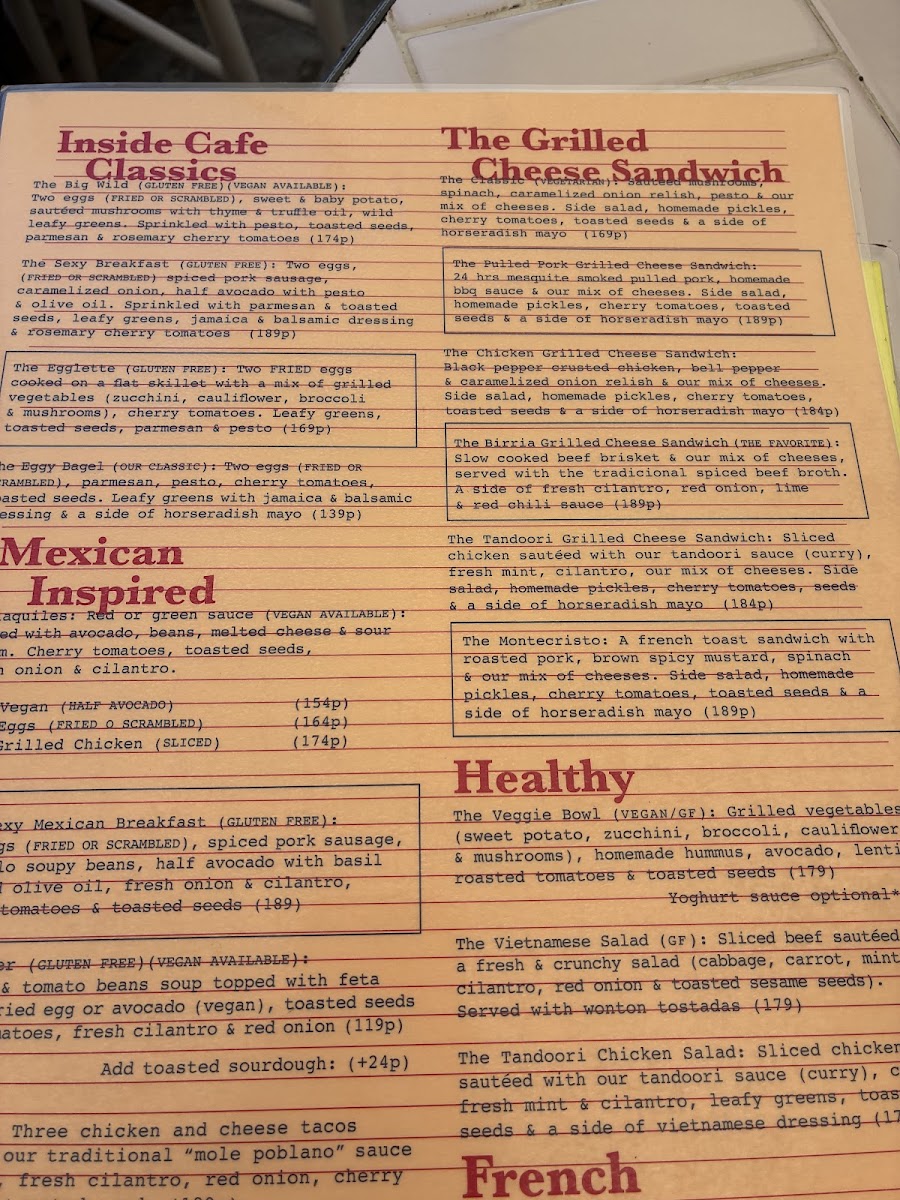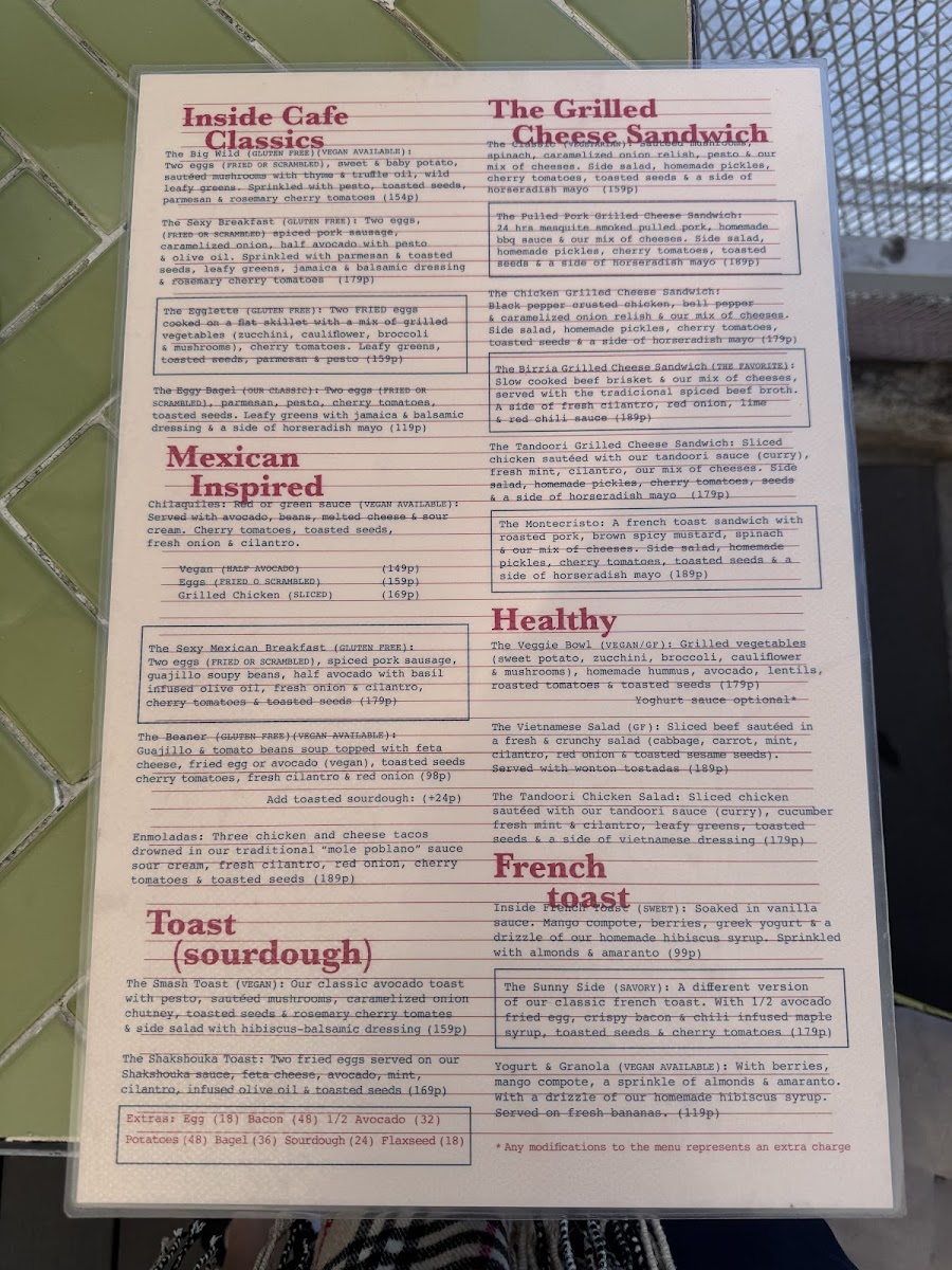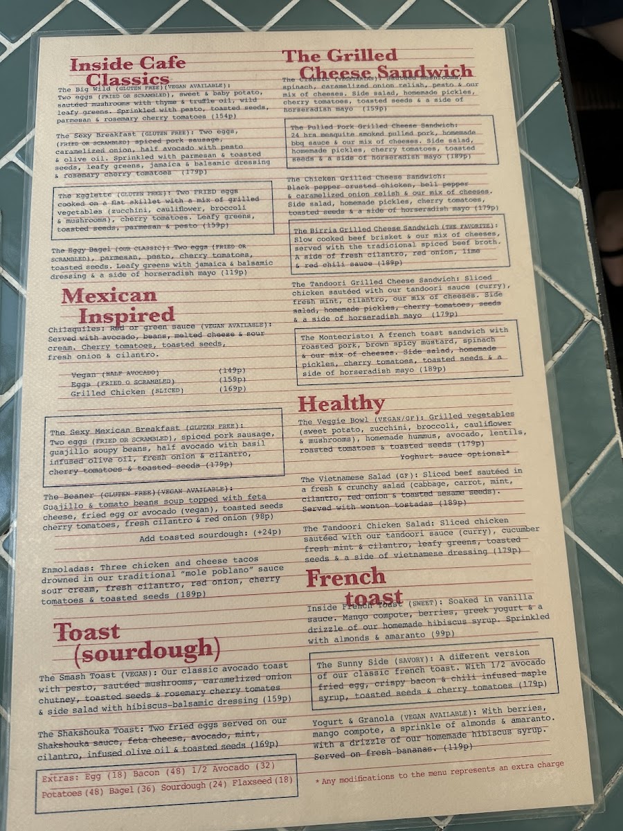 The Inside Cafe Menu offers a delightful array of dishes that make every visit a memorable experience. Nestled in the heart of San Miguel de Allende, just off Insurgentes 66, this cozy spot in the Zona Centro invites you to enjoy flavors that feel like a warm embrace. Whether you're craving a quick bite or a leisurely meal, the menu has something for everyone, from savory classics to innovative creations. The rich aromas of freshly brewed coffee complement the comforting meals, making it the perfect place to unwind or catch up with friends. Don't miss out on their signature dishes, each prepared with a special touch that reflects the vibrant culinary scene of the Centro Histórico. If you're looking for a place that feels like home, Inside Cafe is the spot where good food and good company come together.